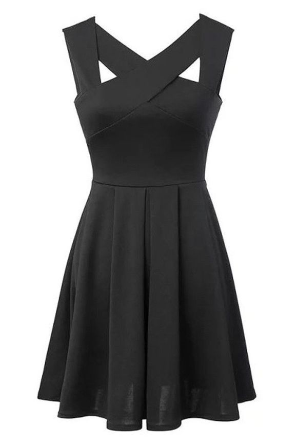 Black Fit Flare Pleated Mini Dress Contact
