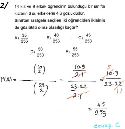 Gur Yayinlari 10 Sinif Olasilik Test 16 Cozumleri Matematik Kitap Cozumleri Matematik Kalesi