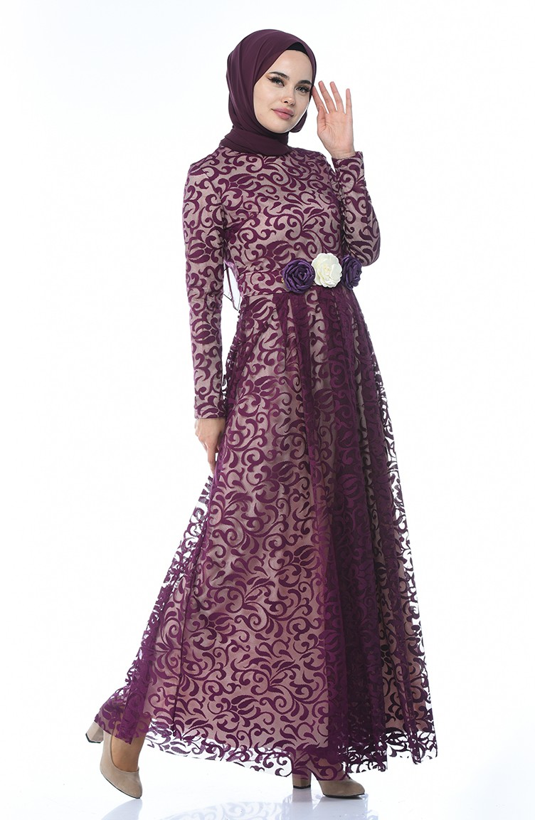Dantelli Abiye Elbise 5037 03 Mor Sefamerve